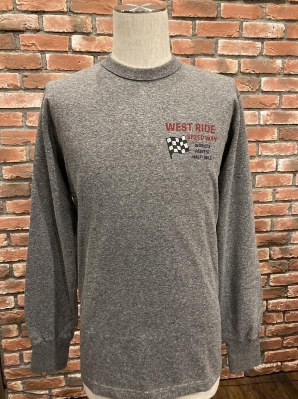 チェッカーフラッグとレーシーなグラフィックが目を引く新作ロンTEEはサーキットのレース場をイメージ。