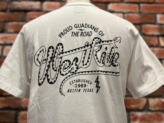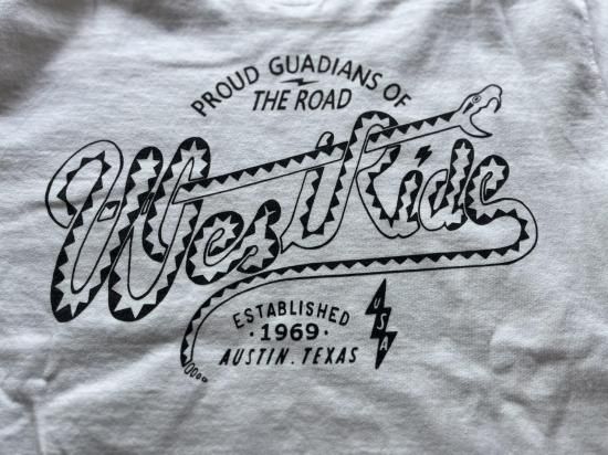 路上の秩序を守る、誇り高き守護神として描かれるRATTLE SNAKE=ガラガラヘビ文字のWESTRIDE。強大なアメリカの象徴でもあるTEXASのイメージを、縄文字とはまた違う表現で盛り込んで誕生した新たなロゴデザインと共に描くWEE氏による新グラフィック。