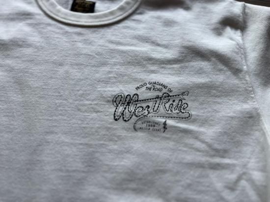 縫製:WESTRIDEのオリジナルTEEは、丸胴の吊り機で編み立てる→サイドを割ってダブルシームで縫製→内側サイドの縫い代をカット→ネックはトリプルバインダー。と非常に手間のかかる仕上げとなっている。この工程により、丸胴に見られるヨジレなどの型崩れもなく、肌触りも良好となる。肌着としての側面も持つTEEだけに、プリント柄だけでなく、品質そのものに拘って生産しています。