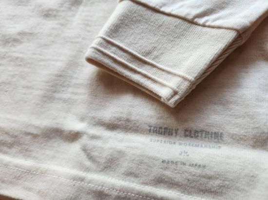 衿はバインダーネック仕様、袖口や裾はダブルステッチにて縫製しています。