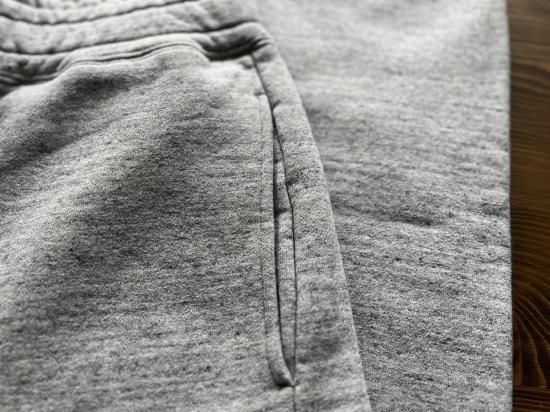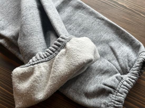 表糸・中糸・裏糸を20/20/7の糸番手で編み立てた肉厚な生地のスウェットパンツ。