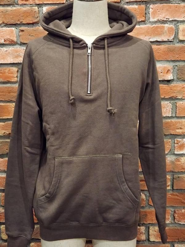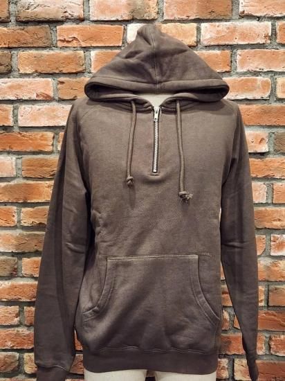 オリジナルの11.8ozヘビーパイル素材を使用したハーフZIPフーディーです。裏面のパイルが大きく、触り心地の良さと温かみを感じさせる特徴的な生地感が魅力です。ビンテージスタイルのハーフZIPがデザインのアクセントとなり、人気のあるスタイルに仕上がっています。とても使い勝手がよく、幅広いスタイルに対応できるアイテムです。