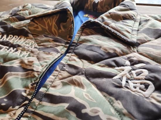表地は瓢箪型のキルティングが入ったミリタリー由来のナイロンリップストップ。
