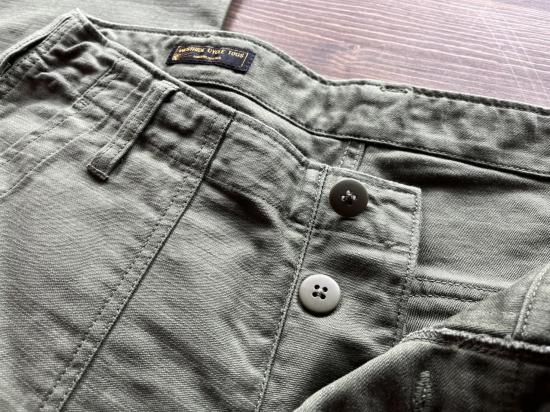 大人気のベイカーパンツ(ファティーグパンツ)60年代が初登場。オリジナルを忠実に再現した生地は緯糸に異番手のスラブバックサテンで仕上げる。最も特徴的である前方のL字型ポケットを採用。シルエットは「太すぎず細すぎず」という絶妙なシルエットで、シンプルな造りとストレートシルエットはスラックスの様な見え方も特徴。ライディングにも考慮したオリジナリティーある作りになっています。